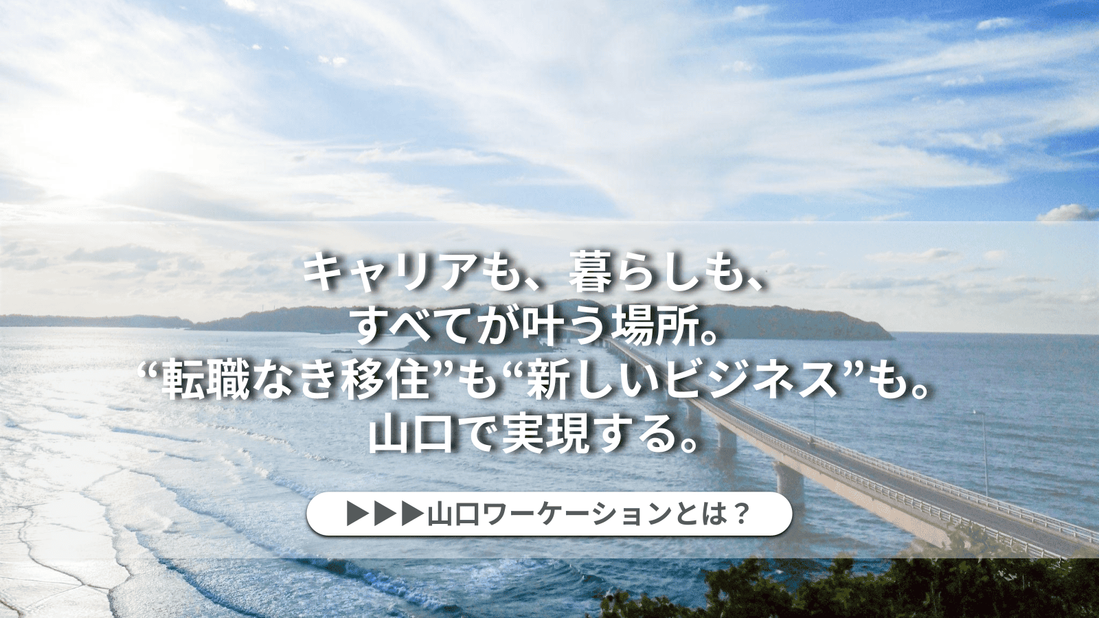 皆様も山口県へテレワーク移住、山口県でのワーケーションを体験し、山口県の魅力を体感してみませんか。