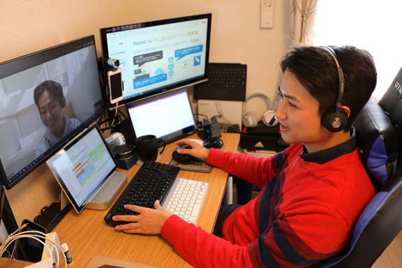 会社自体が「いつでも、どこでも、誰とでも」というコンセプトの働き方を推進しており、決まった業務時間という考え方がなく、自分で業務時間を決められるため、そもそも理解してもらえる土壌が整っている状況です。直属の上司の承認さえ得られれば、どこでも働ける環境で、私と同様に地域でリモートワークしている同僚も沢山増えています。ちょっとした配慮として、東京へ出張するときは、職場メンバーへ山口県土産を買っていったりもしていますね。また、クライアントからネガティブな印象を持たれた事は一度も無いです。逆に、いつもリモートワークでの接客となっているので、リアルでお会いする時にどのような価値を出そうかを考えるようになりました。