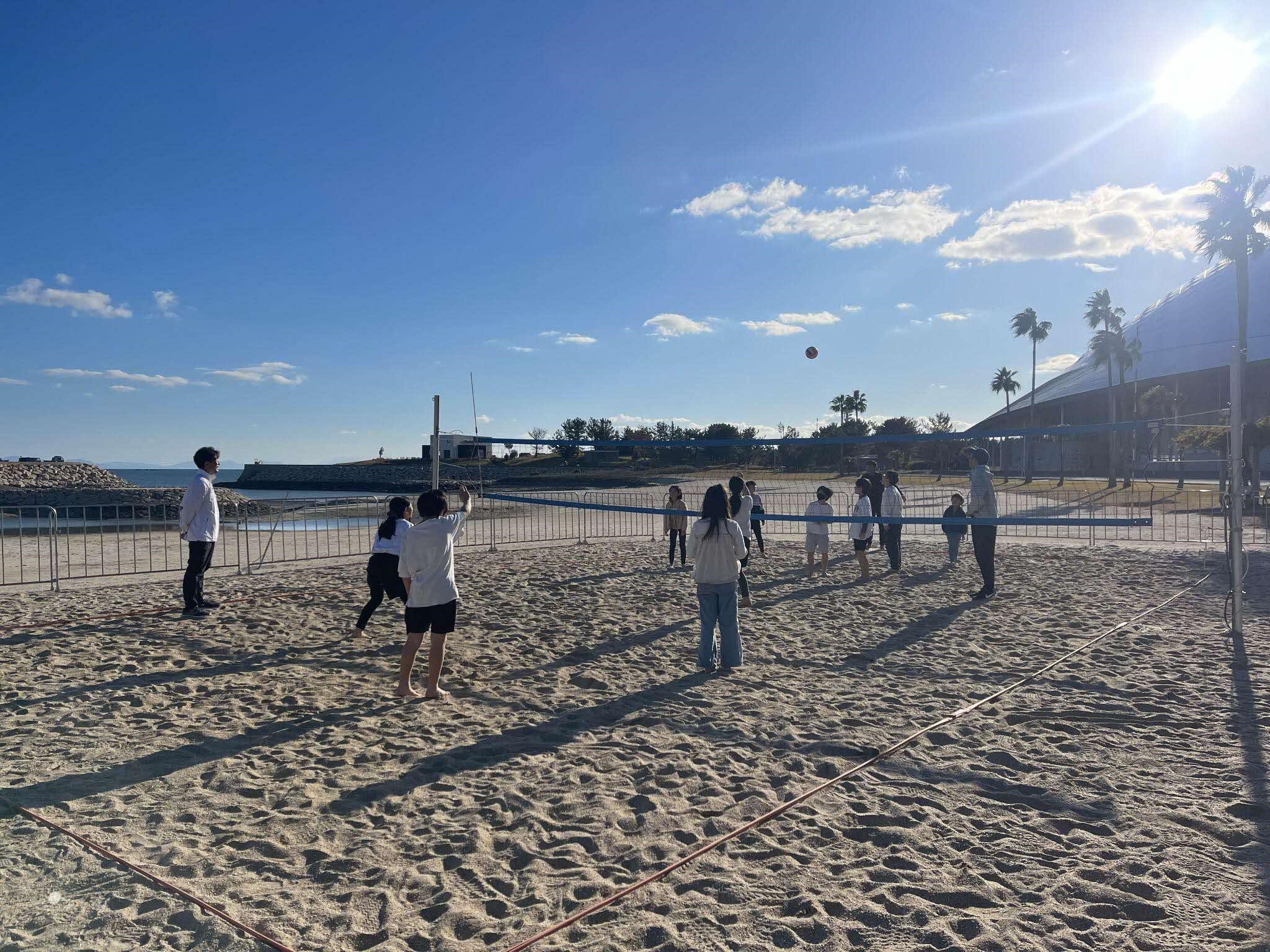 普段は室内でバレーをしている子どもたち。初めての砂浜でのビーチバレー経験を通して「意外とコートが小さい」「裸足だから足の裏が痛い」など、自分たちの知っている「バレー」との違いを楽しんでいました。また、他の子どもたちからは、「砂の上だと、思うように動けない!」という声も。