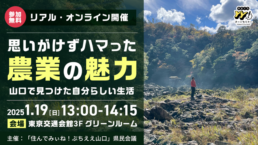 【1/19(日)13:00~リアル・オンライン開催(東京・有楽町)】思いがけずハマった農業の魅力 山口で見つけた自分らしい生活